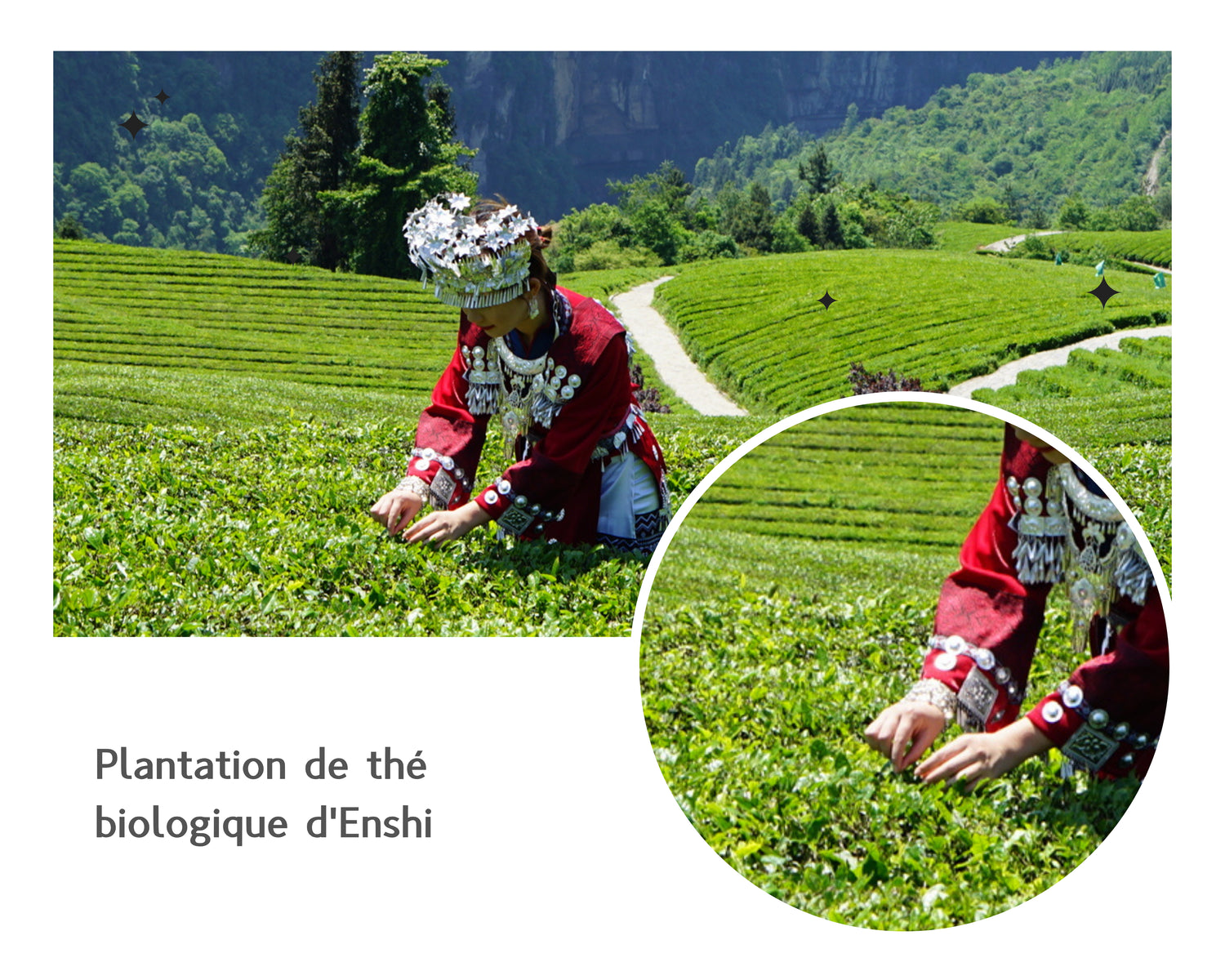 Our tea is harvested in the mountainous region of Enshi, which has a temperate and misty climate, ideal for growing tea plants. Picking the leaves is a crucial step that affects the quality of the final tea. Typically, only the young leaves and buds are harvested, as they concentrate the essential aromas and nutrients. People in the mountainous areas have earned their living by picking tea for generations. They have become very skilled in the art of selecting the most tender tea leaves. The process is often done by hand to preserve the integrity of the leaf.