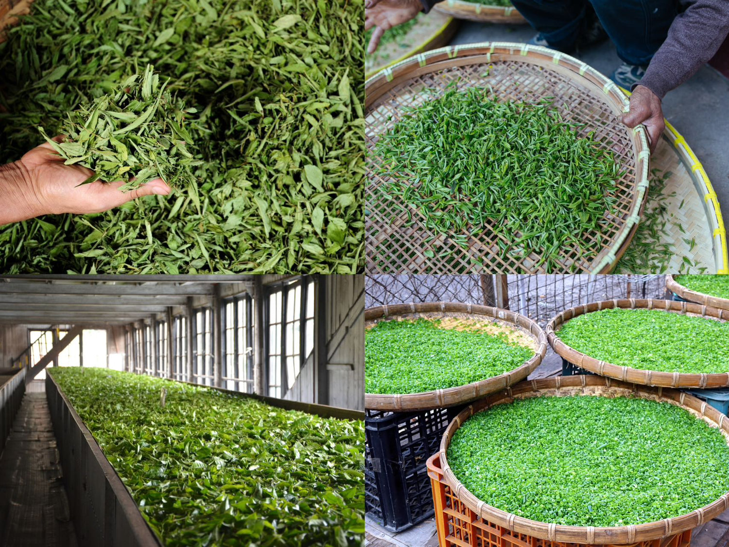 Withering: Once picked, the leaves are transported to the processing location for the withering phase. This step consists of spreading the leaves in a ventilated environment to reduce their humidity level. Withering makes the leaves more flexible and facilitates the following steps, including rolling. Depending on the tea variety, this step can last from a few hours to an entire day.